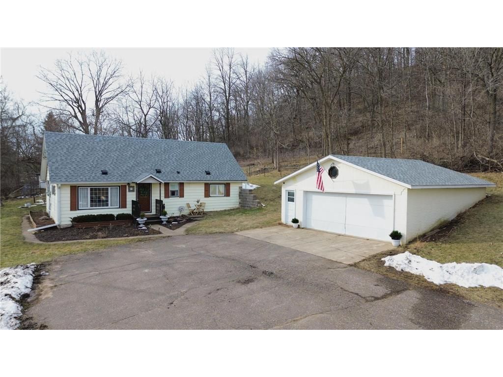 Charming and full of character, this adorable 1.5-story home sits on a beautiful 2-acre lot in Beldenville - just 10 minutes from River Falls and 20 minutes from Hudson! Thoughtfully maintained and tastefully updated, the home blends modern touches with timeless charm. Main level home features include an updated kitchen with newer stainless steel appliances, a spacious yet inviting living room with beautiful hardwood floors, and a lovely 3-season porch - perfect for relaxing or enjoying your morning coffee, plus the master bedroom, full bath, and laundry. Upstairs, you'll find two additional bedrooms plus a versatile bonus room ideal for an office, playroom, or extra lounge space. Outside is where this property truly shines - featuring a spacious yard with mature landscaping and perennials, a fenced area for pets, plus a chicken coop and goat barn for those looking to embrace a little country lifestyle. A 2-car detached garage adds extra convenience and storage, and the roof was new in 2019. Enjoy trout fishing in the stream (Goose Creek) just across the street and easy access to public hunting land only 2 miles away - perfect for outdoor enthusiasts. Pre-inspected for peace of mind and includes a 14-month buyer home warranty. A rare and unique opportunity with space and charm in an excellent location!